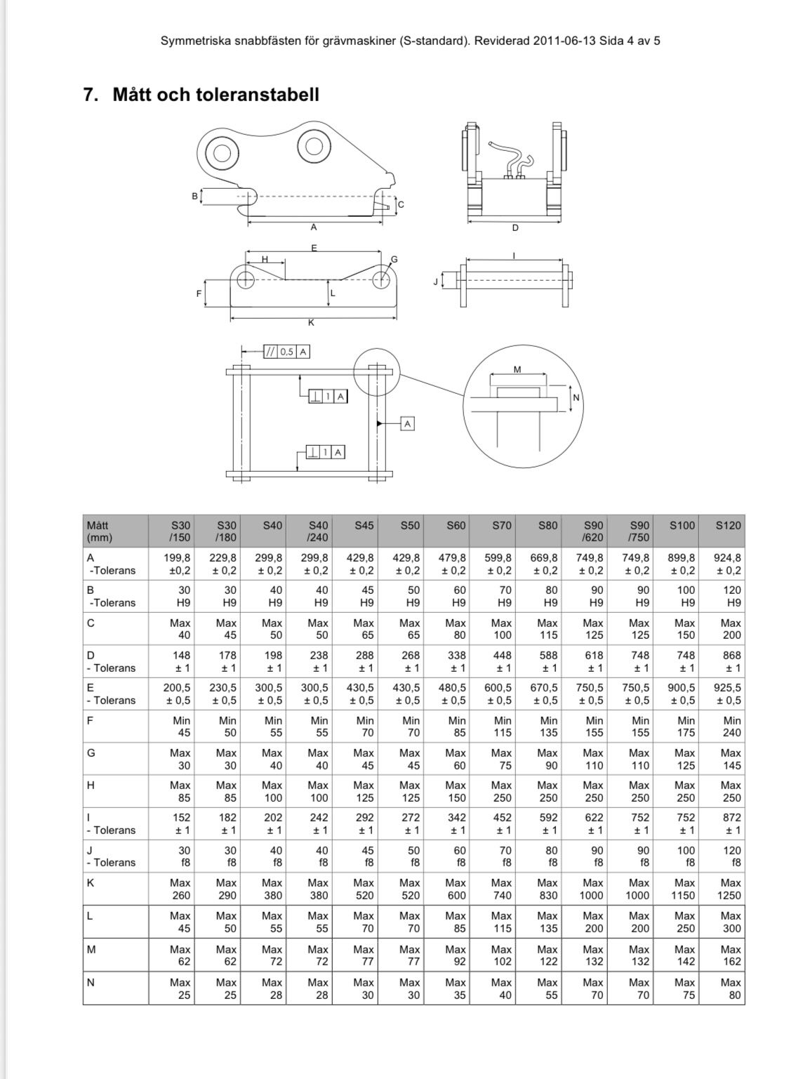 Här nedan redovisas mått och toleranser för symmetriska fästen enligt Maskinleverantörerna.